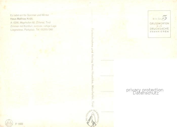 73590997 Mayrhofen Zillertal Haus Mathias Kroell postalisch nicht gelaufen Erhaltung siehe scans [KathaD81] KatCode: 11390335070920