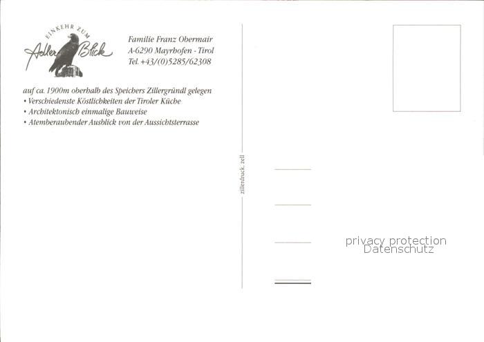 71915565 Mayrhofen Zillertal Hotel Adlerblick postalisch nicht gelaufen Erhaltung siehe scans KatCode: 11390335070920