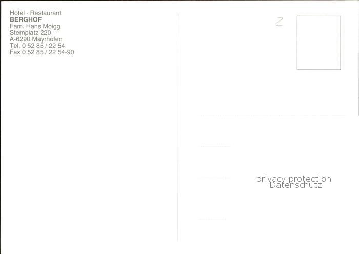 72224034 Mayrhofen Zillertal Hotel Berghof postalisch nicht gelaufen Erhaltung siehe scans KatCode: 11390335070920