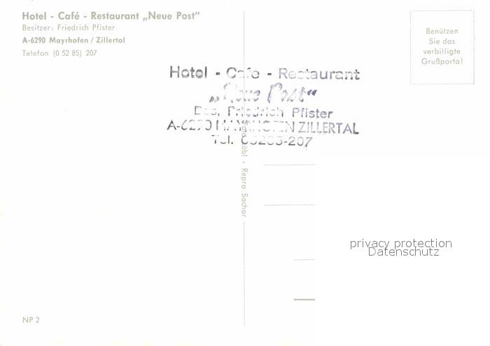 12637357 Mayrhofen Zillertal Hotel Cafe Restaurant Neue Post postalisch nicht gelaufen Erhaltung siehe scans [LiesaD40] KatCode: 11390335070920