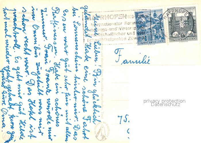 13588530 alte Postkarte Mayrhofen Zillertal Hotel Neuhaus postalisch gelaufen Erhaltung siehe scans [LiesaD40] KatCode: 11390335070920