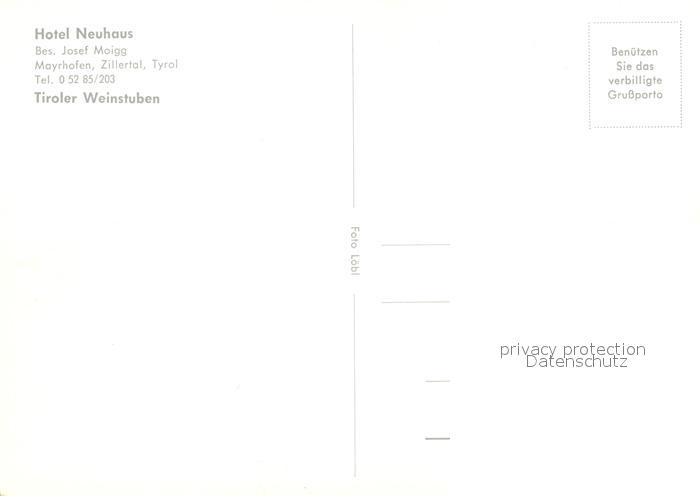 73225037 Mayrhofen Zillertal Hotel Neuhaus Tiroler Weinstuben postalisch nicht gelaufen Erhaltung siehe scans [FriedD77] KatCode: 11390335070920