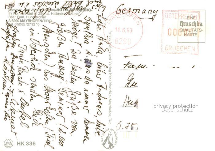 12983751 Mayrhofen Zillertal Hotel Sankt Georg postalisch nicht gelaufen Erhaltung siehe scans [AndreD76] KatCode: 11390335070920