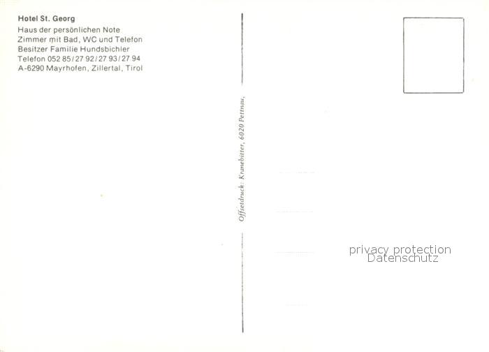73590870 Mayrhofen Zillertal Hotel Sankt Georg postalisch nicht gelaufen Erhaltung siehe scans [KathaD81] KatCode: 11390335070920