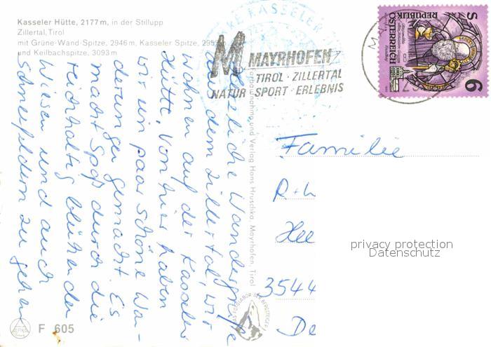72627483 alte Postkarte Mayrhofen Zillertal Kasseler Huette in der Stillupp Zillertaler Alpen postalisch gelaufen Erhaltung siehe scans [FriedD77] KatCode: 11390335070920