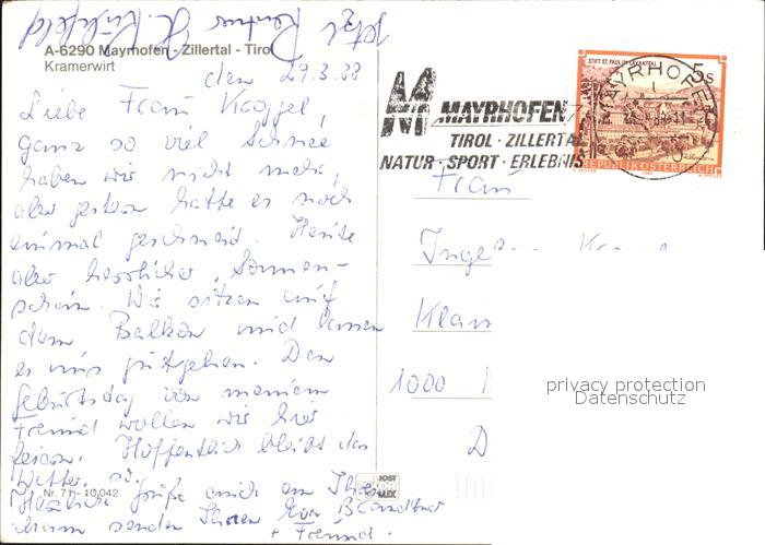 72492230 alte Postkarte Mayrhofen Zillertal Kramerwirt postalisch gelaufen Erhaltung siehe scans KatCode: 11390335070920