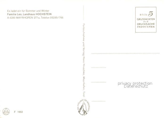 73588145 Mayrhofen Zillertal Landhaus Hochstein Gaestehaus Zillertaler Alpen postalisch nicht gelaufen Erhaltung siehe scans [FriedD77] KatCode: 11390335070920