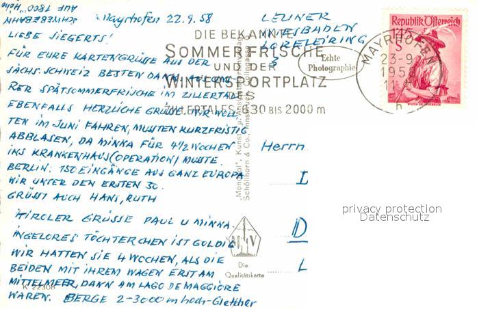72643589 alte Postkarte Mayrhofen Zillertal Luftseilbahn Ahornspitze postalisch gelaufen Erhaltung siehe scans [NatalD47] KatCode: 11390335070920