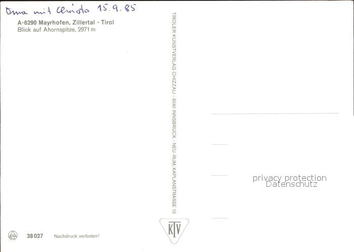 72450905 Mayrhofen Zillertal mit Ahornspitze postalisch nicht gelaufen Erhaltung siehe scans KatCode: 11390335070920