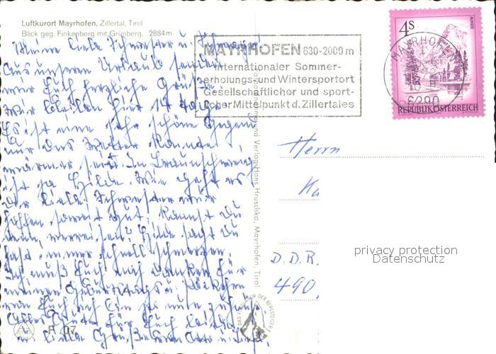 72064116 alte Postkarte Mayrhofen Zillertal mit Finkenberg und Gruenberg postalisch gelaufen Erhaltung siehe scans KatCode: 11390335070920