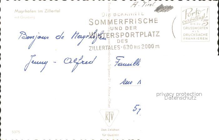 71812326 alte Postkarte Mayrhofen Zillertal mit Gruenberg postalisch gelaufen Erhaltung siehe scans KatCode: 11390335070920