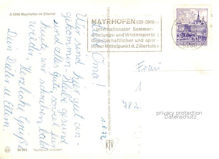 73004097 alte Postkarte Mayrhofen Zillertal Ortspartie postalisch gelaufen Erhaltung siehe scans [WerneD78] KatCode: 11390335070920