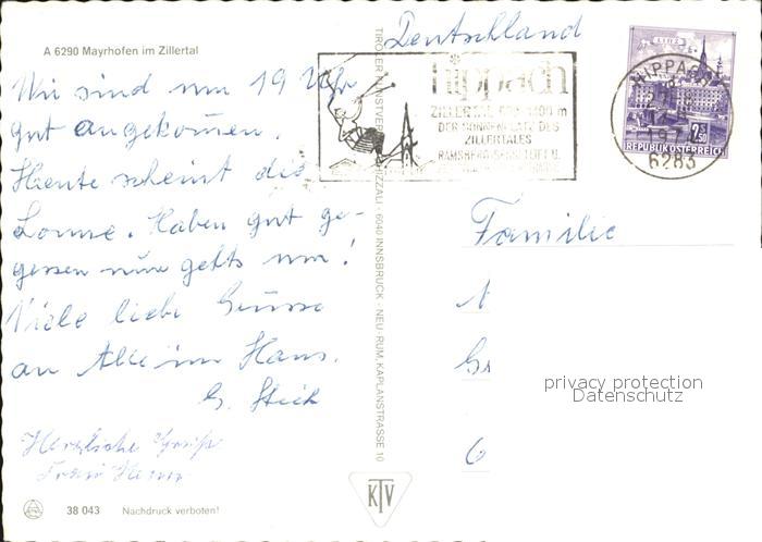 72454742 alte Postkarte Mayrhofen Zillertal Ortspartie mit Kirche postalisch gelaufen Erhaltung siehe scans KatCode: 11390335070920
