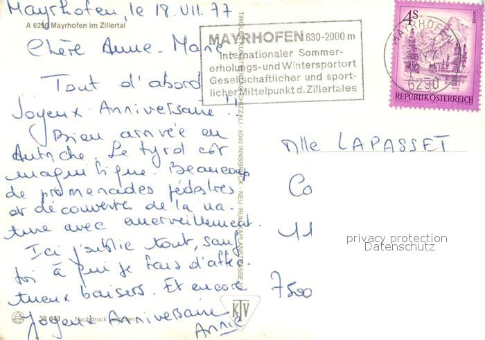 73512983 alte Postkarte Mayrhofen Zillertal Ortspartie postalisch gelaufen Erhaltung siehe scans [WerneD78] KatCode: 11390335070920