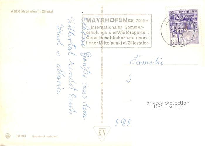 73005424 alte Postkarte Mayrhofen Zillertal Panorama Gueterzug Kirche Ortsansichten postalisch gelaufen Erhaltung siehe scans [KathaD81] KatCode: 11390335070920
