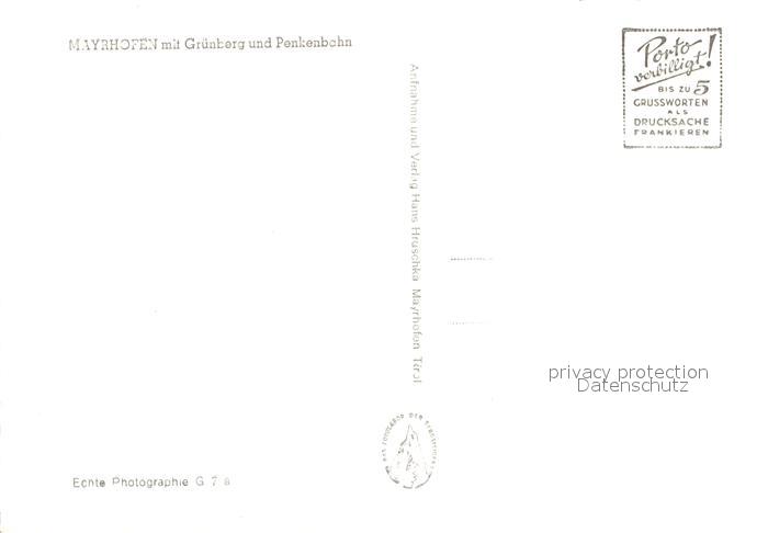 73361039 Mayrhofen Zillertal Panorama mit Gruenberg und Penkenbahn Zillertaler Alpen postalisch nicht gelaufen Erhaltung siehe scans [FriedD77] KatCode: 11390335070920