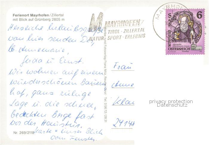 73626076 alte Postkarte Mayrhofen Zillertal Panorama mit Gruenberg postalisch gelaufen Erhaltung siehe scans [FriedD77] KatCode: 11390335070920