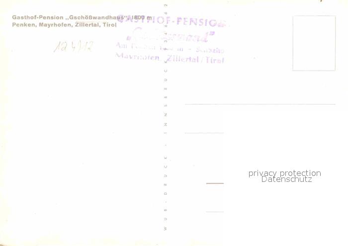 72667044 Mayrhofen Zillertal Penken Gasthaus Pension Gschoesswandhaus postalisch nicht gelaufen Erhaltung siehe scans [LiesaD40] KatCode: 11390335070920