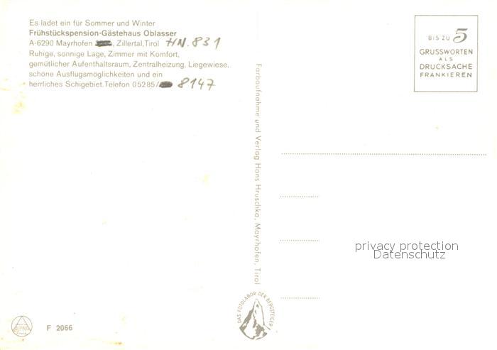 73085803 Mayrhofen Zillertal Pension Gaestehas Oblasser Bergbahn Alpenpanorama Fliegeraufnahme postalisch nicht gelaufen Erhaltung siehe scans [FriedD77] KatCode: 11390335070920