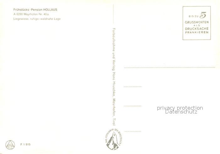 73588138 Mayrhofen Zillertal Pension Hollaus Landschaftspanorama Bergbach Zillertaler Alpen postalisch nicht gelaufen Erhaltung siehe scans [FriedD77] KatCode: 11390335070920