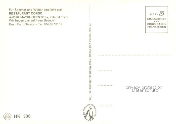 73630315 Mayrhofen Zillertal Restaurant Corso postalisch nicht gelaufen Erhaltung siehe scans [WerneD78] KatCode: 11390335070920