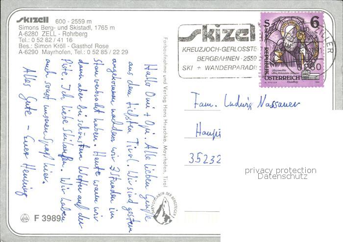 72539247 alte Postkarte Mayrhofen Zillertal Skistadl postalisch gelaufen Erhaltung siehe scans [AndreD76 kt119box] KatCode: 11390335070920