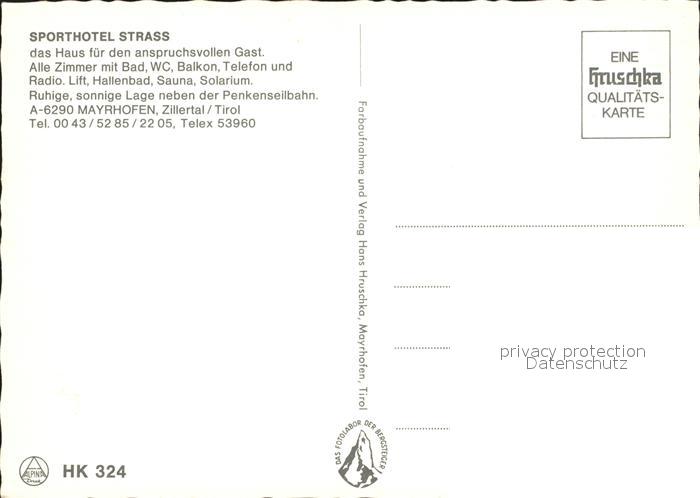 72210694 Mayrhofen Zillertal Sporthotel Strass postalisch nicht gelaufen Erhaltung siehe scans KatCode: 11390335070920