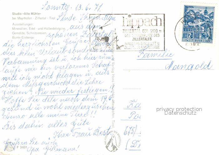 72773854 alte Postkarte Mayrhofen Zillertal Studio Alte Muehle postalisch gelaufen Erhaltung siehe scans [AndreD76] KatCode: 11390335070920