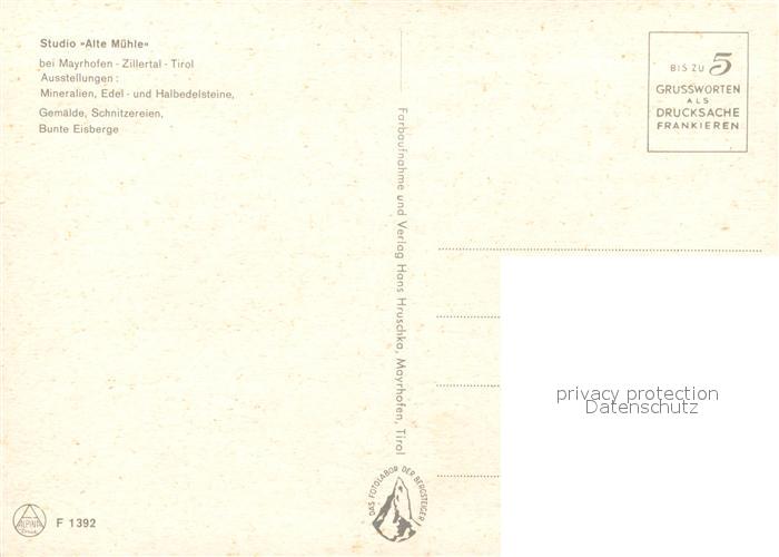 73240714 Mayrhofen Zillertal Studio Alte Muehle Wurzen Max postalisch nicht gelaufen Erhaltung siehe scans [LiesaD40] KatCode: 11390335070920