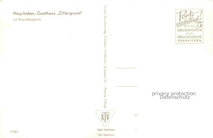 74150762 Mayrhofen Zillertal Tirol AT Gasthaus-Zillergrund Brandbergkolm Bach Tallandschaft Berge postalisch nicht gelaufen Erhaltung siehe scans [Karloger] KatCode: 11390335070920