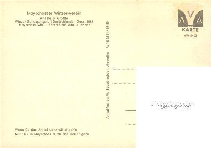 73024064 Mayschoss aelteste und groesste Winzergenossenschaft Weinkeller postalisch nicht gelaufen Erhaltung siehe scans [KathaD81] KatCode: 11110007131049