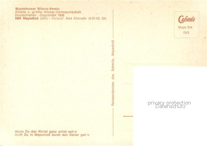 73043112 Mayschoss aelteste Winzergenossenschaft Deutschlands 1868 Weinkeller postalisch nicht gelaufen Erhaltung siehe scans [FriedD77] KatCode: 11110007131049