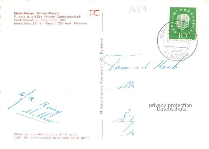 74050193 alte Postkarte Mayschoss Ahr Mayschosser Weinkeller postalisch gelaufen Erhaltung siehe scans [WerneD78] KatCode: 11110007131049