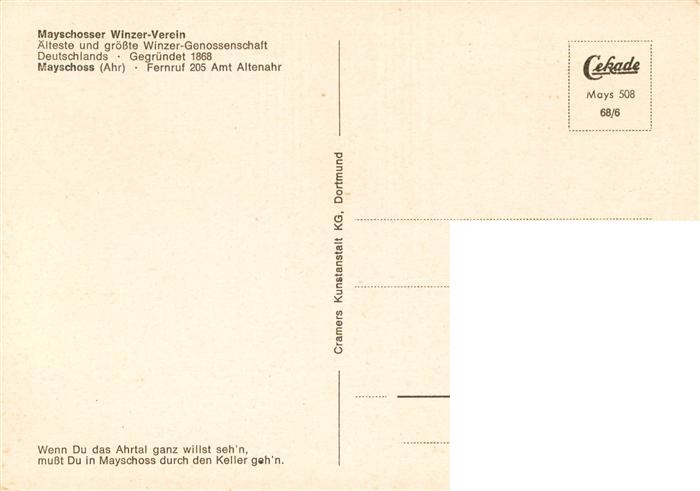 73885242 Mayschoss Ahr Winzer Verein Mayschoss Weinkeller Gastraum postalisch nicht gelaufen Erhaltung siehe scans [WerneD78] KatCode: 11110007131049