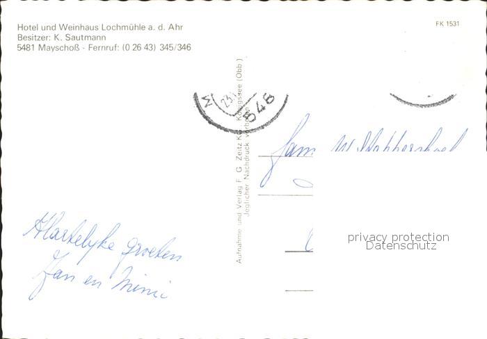 72254661 alte Postkarte Mayschoss Hotel und Weinhaus Lochmuehle an der Ahr Weinberge postalisch gelaufen Erhaltung siehe scans KatCode: 11110007131049
