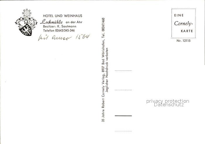 72455096 Mayschoss Hotel Weinhaus Lochmuehle Ahr postalisch nicht gelaufen Erhaltung siehe scans KatCode: 11110007131049