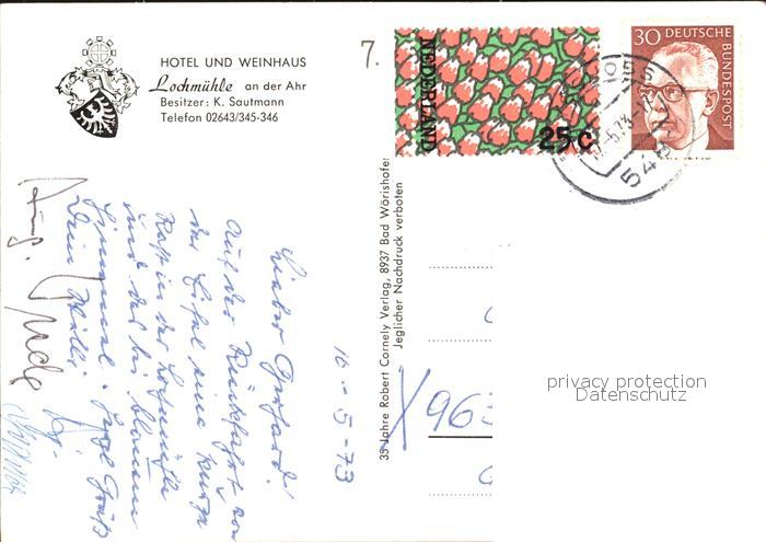 72455101 alte Postkarte Mayschoss Hotel Weinhaus Lochmuehle Ahr postalisch gelaufen Erhaltung siehe scans KatCode: 11110007131049