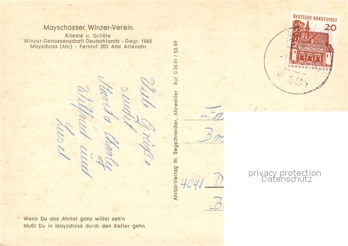 73569247 alte Postkarte Mayschoss Mayschosser Weinkeller postalisch gelaufen Erhaltung siehe scans [PaolaD17] KatCode: 11110007131049