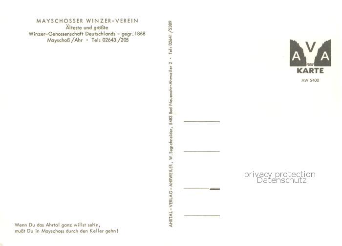 73759836 Mayschoss Mayschosser Weinkeller postalisch nicht gelaufen Erhaltung siehe scans [FriedD77] KatCode: 11110007131049