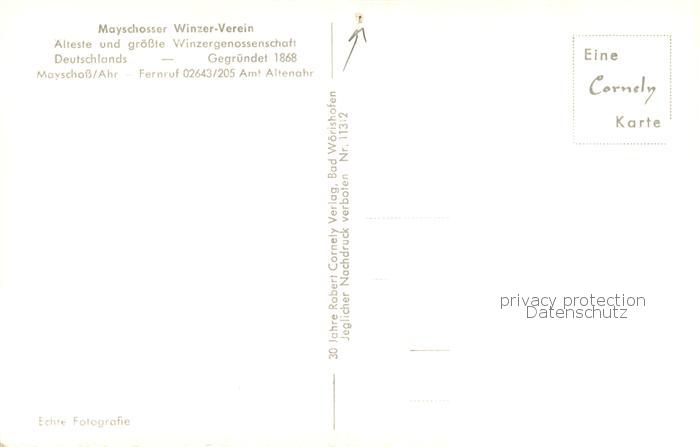 73757752 Mayschoss Mayschosser Winzer-Verein Fass-Keller postalisch nicht gelaufen Erhaltung siehe scans [LiesaD40] KatCode: 11110007131049
