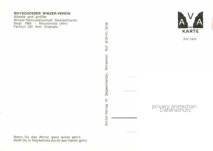 72707319 Mayschoss Mayschosser Winzer Verein Weinkeller postalisch nicht gelaufen Erhaltung siehe scans [WerneD78] KatCode: 11110007131049