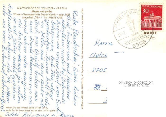 73024071 alte Postkarte Mayschoss Mayschosser Winzerverein postalisch gelaufen Erhaltung siehe scans [KathaD81] KatCode: 11110007131049