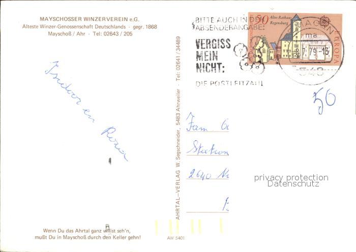 72347516 alte Postkarte Mayschoss Mayschosser Winzerverein postalisch gelaufen Erhaltung siehe scans KatCode: 11110007131049