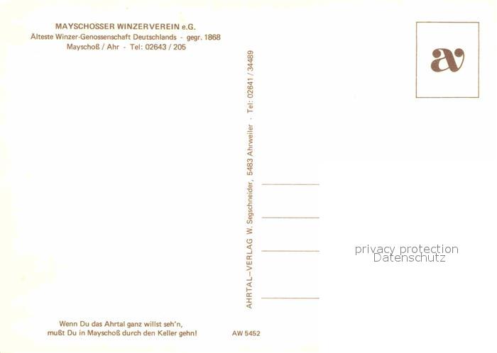 72783387 Mayschoss Mayschosser Winzerverein aelteste Winzergenossenschaft Deutschlands Ahrtal Weinkeller postalisch nicht gelaufen Erhaltung siehe scans [FriedD77] KatCode: 11110007131049