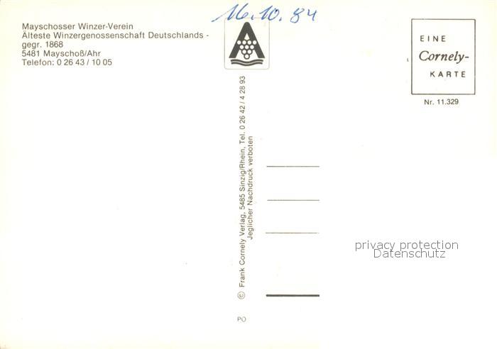 73169583 Mayschoss Mayschosser Winzerverein aelteste Winzergenossenschaft Deutschlands Panorama Ahrtal Cornely Karte Nr 11329 postalisch nicht gelaufen Erhaltung siehe scans [FriedD77] KatCode: 11110007131049