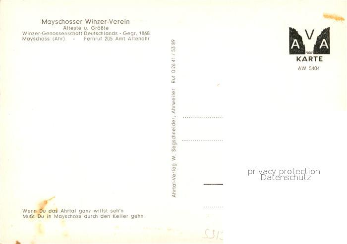 73609008 Mayschoss Mayschosser Winzerverein Mayschosser Weinkeller Gewoelbekeller Verkaufsraum postalisch nicht gelaufen Erhaltung siehe scans [WerneD78] KatCode: 11110007131049