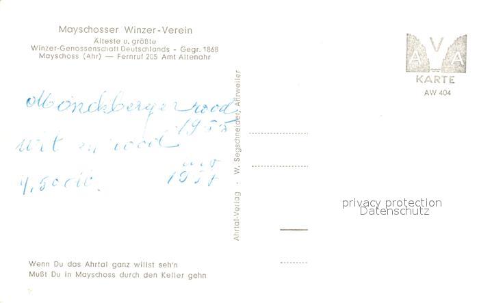73560318 Mayschoss Mayschosser Winzerverein Weinkeller postalisch nicht gelaufen Erhaltung siehe scans [KathaD81] KatCode: 11110007131049