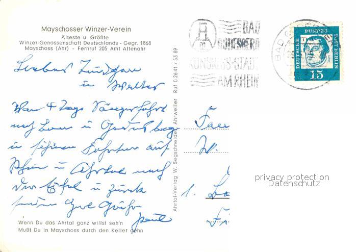 72617789 alte Postkarte Mayschoss Mayschosser Winzerverein Weinkeller postalisch gelaufen Erhaltung siehe scans [FriedD77] KatCode: 11110007131049