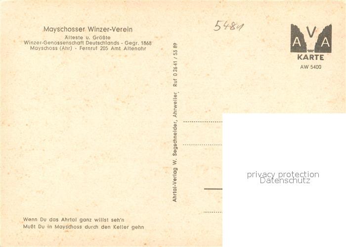 73171253 Mayschoss Mayschosser Winzerverein Weinkeller aelteste Winzergenossenschaft Deutschlands postalisch nicht gelaufen Erhaltung siehe scans [FriedD77] KatCode: 11110007131049