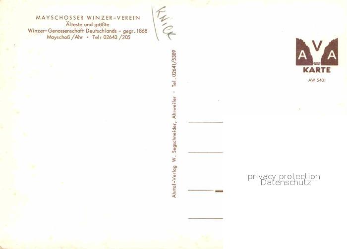 72707639 Mayschoss Mayschosser Winzerverein Weinstube aelteste und groesste Winzergenossenschaft Deutschlands postalisch nicht gelaufen Erhaltung siehe scans [FriedD77] KatCode: 11110007131049